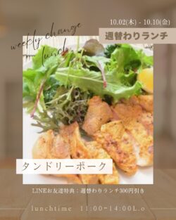 10/2~10 たんドリーポーク 10/14~25 お魚のムニエル キノコソース